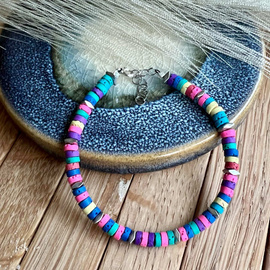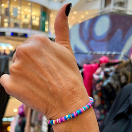 ( ilość produktów: 84 )Tęcza kolorów - Multikolorowa bransoletka z lawy wulkanicznej, przekładana hematytem - zapinana
