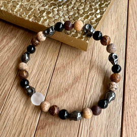 Japis, czachy hematyt, kryształ górski - bransoletka z kamieni naturalnych