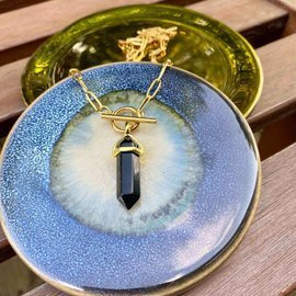 Obsydian czarny - talizman - naszyjnik z kamieniem - kolor złoty