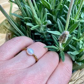 Złota perła - pierścionek z kamieni