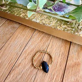 Czarny spinel i lapis lazuli - pierścionek z kamieni naturalnych