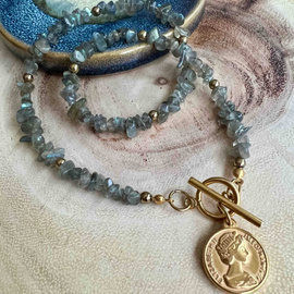 ( ilość produktów: 174 )Naszyjnik z kamieni naturalnych, naszyjnik z labradorytów z monetą królowej