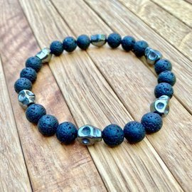 ( ilość produktów: 174 )Czarna lawa wulkaniczna z czachami - męska bransoletka z kamieni naturalnych